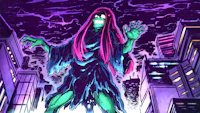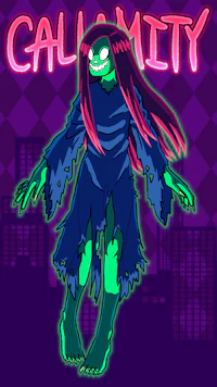 Callamity is the giant antagonist of the season. Originally known as a normal woman named “Calli”, Callamity was allegedly born out of a freak accident with barrels full of hazardous chemicals. Now with an evil mind of her own, she only wants to seek out death and destruction to every living thing and structure. Since her creation, she endlessly grows and grows with no sign of stopping. Her skin is made entirely of toxic radiation, one touch of it will instantly kill a person and turn them into a ghost. Her ultimate goal is to lay waste to the entire planet until it crumbles beneath her.