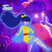 One of the four Neon Ghosties from 2066. Tess never heard of the GHS until after she was killed by Callamity and turned into a ghost. She didn't really want to join, but Rita convinced her that it'll be the only way to get revenge... so Tess joined the GHS as a Neon Ghostie. Watching the ghost hunts, Tess became more acquainted with the process and soon began offering assistance to the hunts with her abilities. She doesn't like to outwardly admit it but she does enjoy spending time with everyone at HQ, they grew on her.